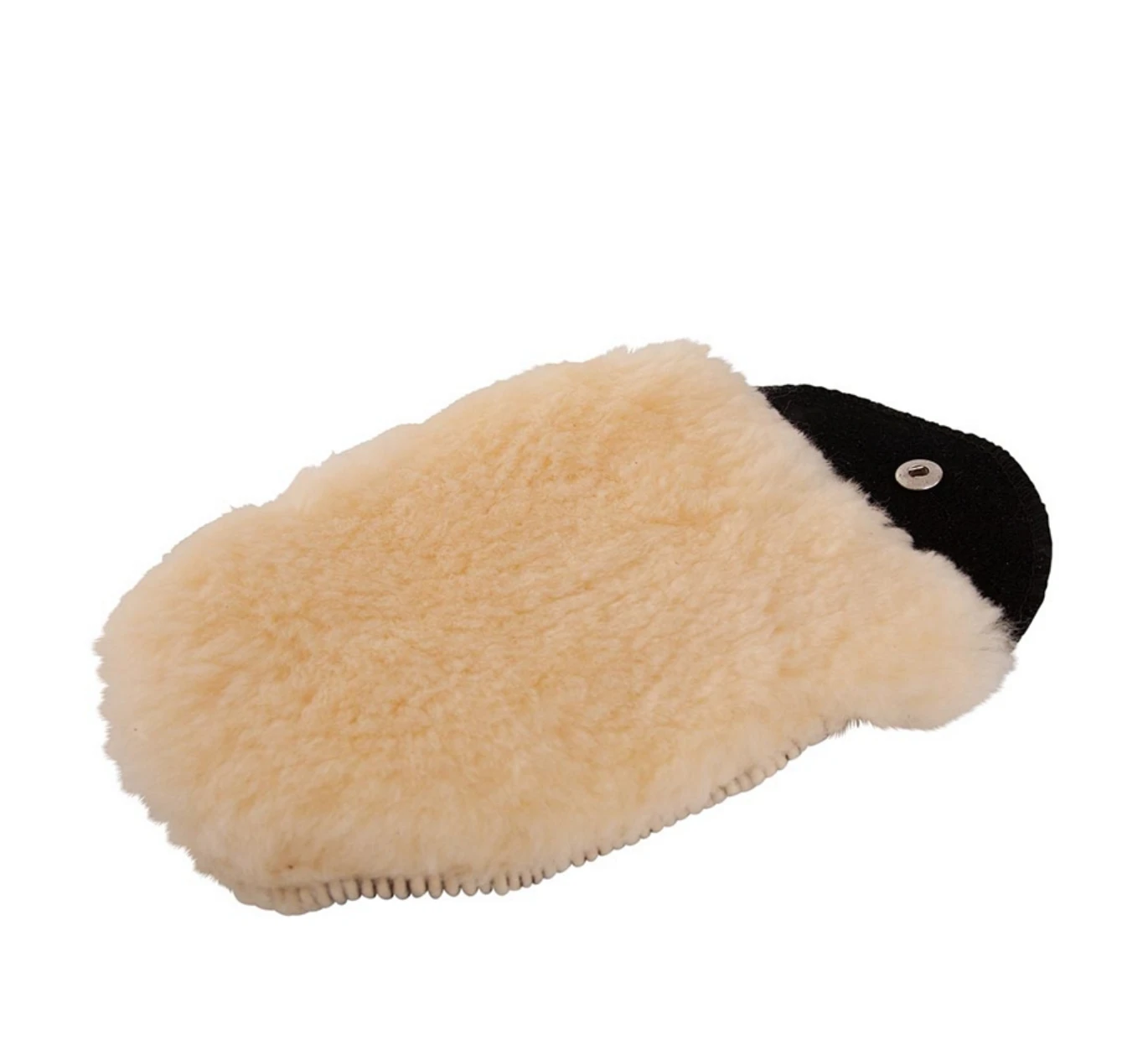 This suede grooming glove features medicinal sheepskin on one side. The sheepskin puts a beautiful shine on leather shoes and boots. The glove can be rolled up into a small size. Perfect for competitions.