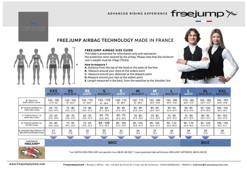 Compatible jackets bear the “Freejump Airbag Technology” badge.