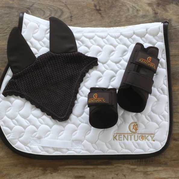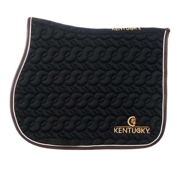 With a thin layer, our Saddle Pad provides excellent cushioning between the horse’s back and the saddle while protecting against friction. The anatomic shape makes sure that the withers is free from pressure and friction. The saddle pad has no annoying straps to attach to the saddle, only a nylon strap for the girth. The artificial leather edge of the saddle pad ensures a fancy look. The Kentucky logo is embroidered on both sides – it also comes in a no logo version. Thanks to its special cut-design and original pattern, our Saddle Pad is used for jumping as well as dressage or eventing. The saddle pad is machine washable at 30°, no dryer.