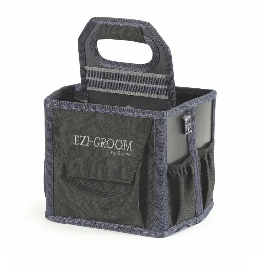 Four compartments with central carrier handle, five open side pockets, one sealable pocket, mesh base.