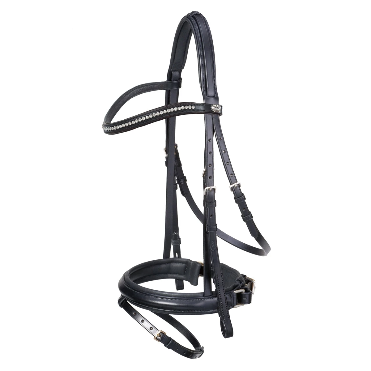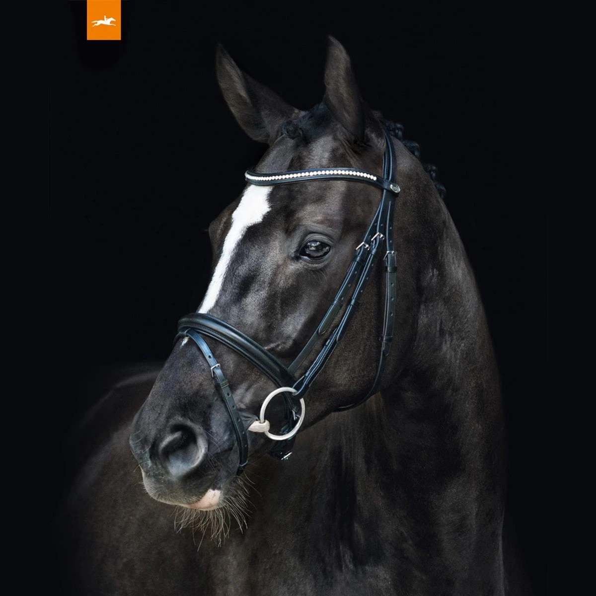 This bridle comes with crank noseband and a padded headpiece. The throat latch is adjustable on both sides.