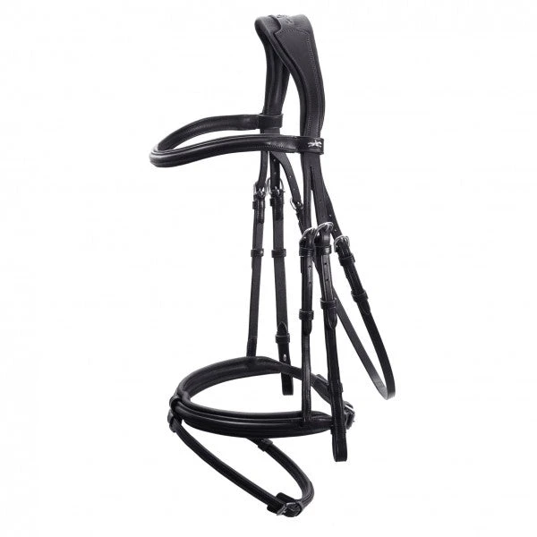 TOKYO SELECT features a softly padded and anatomically pre-shaped flash noseband. A special highlight is the completely removable flash strap. If required, the flash can be removed easily and not even the annoying loop will be left. Flash strap and loop are also incredibly soft and specially padded. The anatomically pre-shaped, narrow head piece has a unique neck area that was especially designed for to the horse’s complicated neck anatomy. The distinctive cut and the soft padding reduce the pressure in the neck significantly.