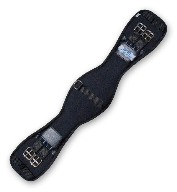 Anatomically shaped coolmax neoprene girth with gel foam and a single D ring. Double end three layer elastic. Black only.