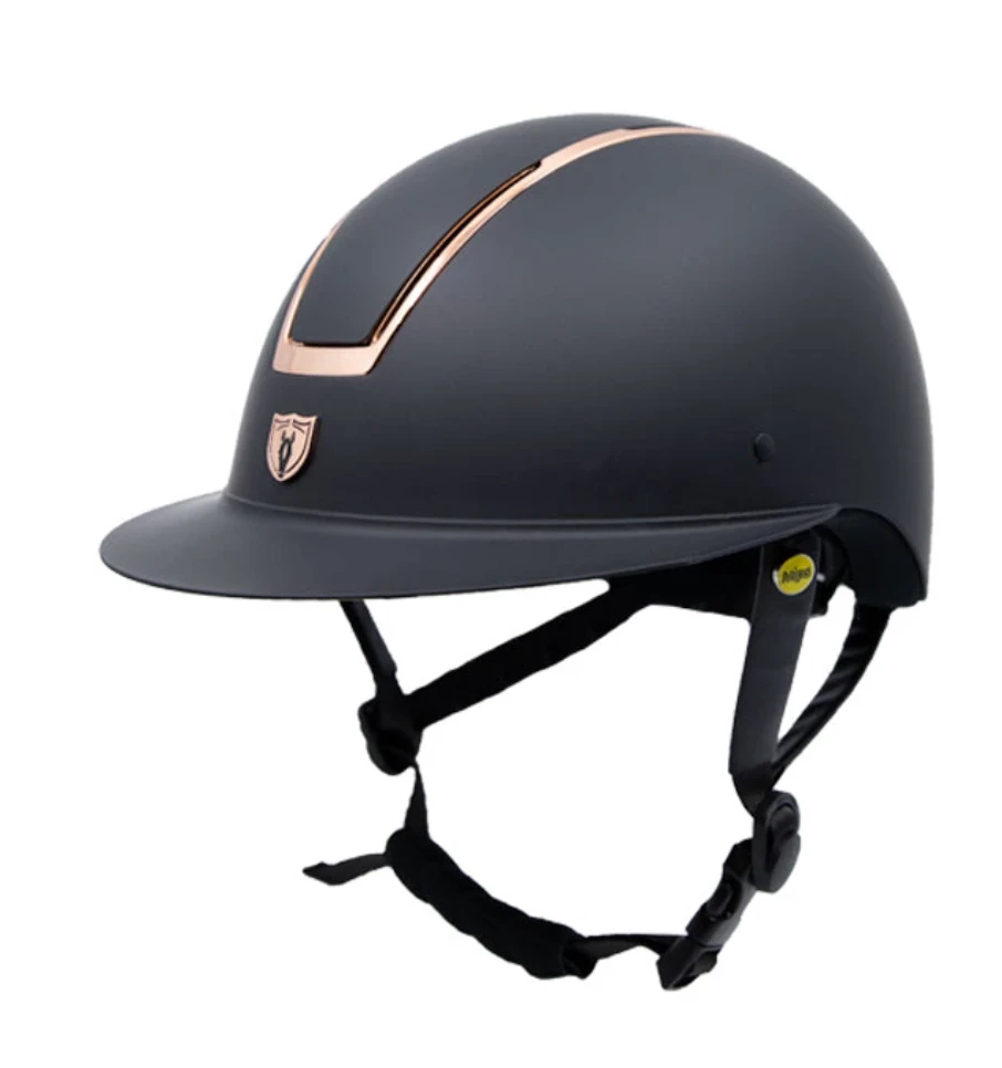 The Windsor with MIPS® is an elegant wide brim helmet appropriate for the show ring. The Windsor offers a full coverage fit and a low profile design, featuring the Tipperary Retention System™ to ensure additional security and comfort. Finished in a stunning mark resistant matte shell and rose gold chrome trim, this helmet is subtle yet eye catching. With the addition of MIPS®, this helmet is on the cutting edge of technology.