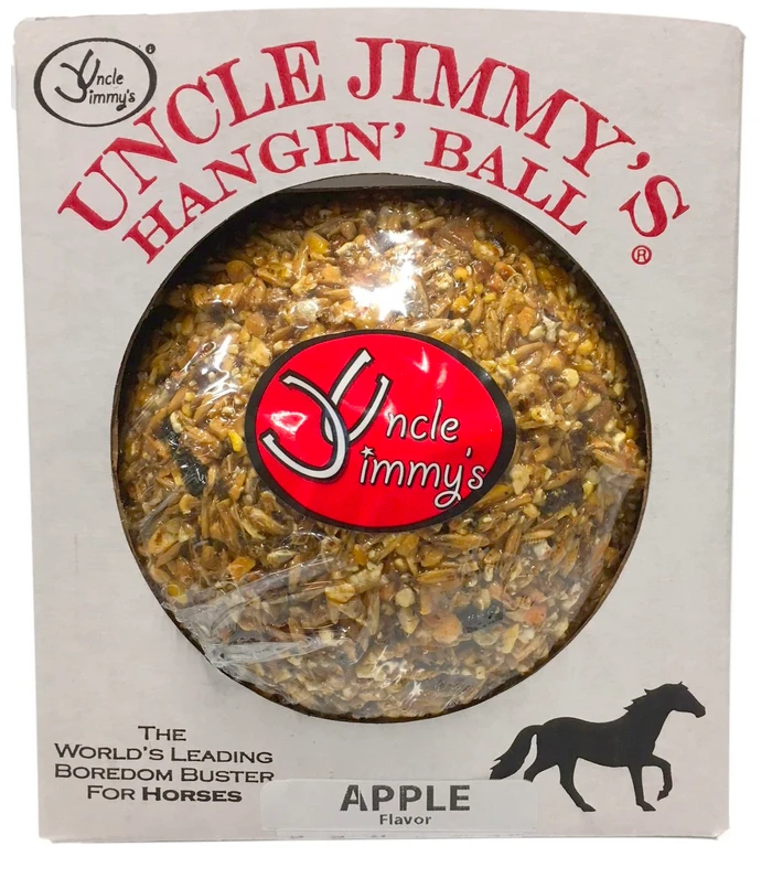 Uncle Jimmy’s Hangin’ Ball is the perfect stall boredom treat for your horse! They will spend hours trying to lick and grab this entertaining ball. Not only is it great tasting, but it is also packed with vitamins and minerals essential for your horse’s everyday needs.
