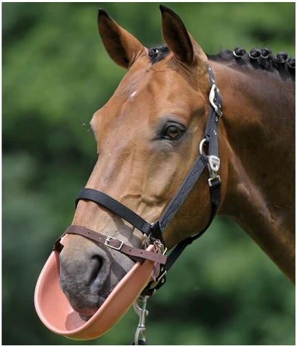 The clothing bib buckles to the halter to prevent your horse from chewing his blanket. The strong plastic is hygienic and easy to clean.